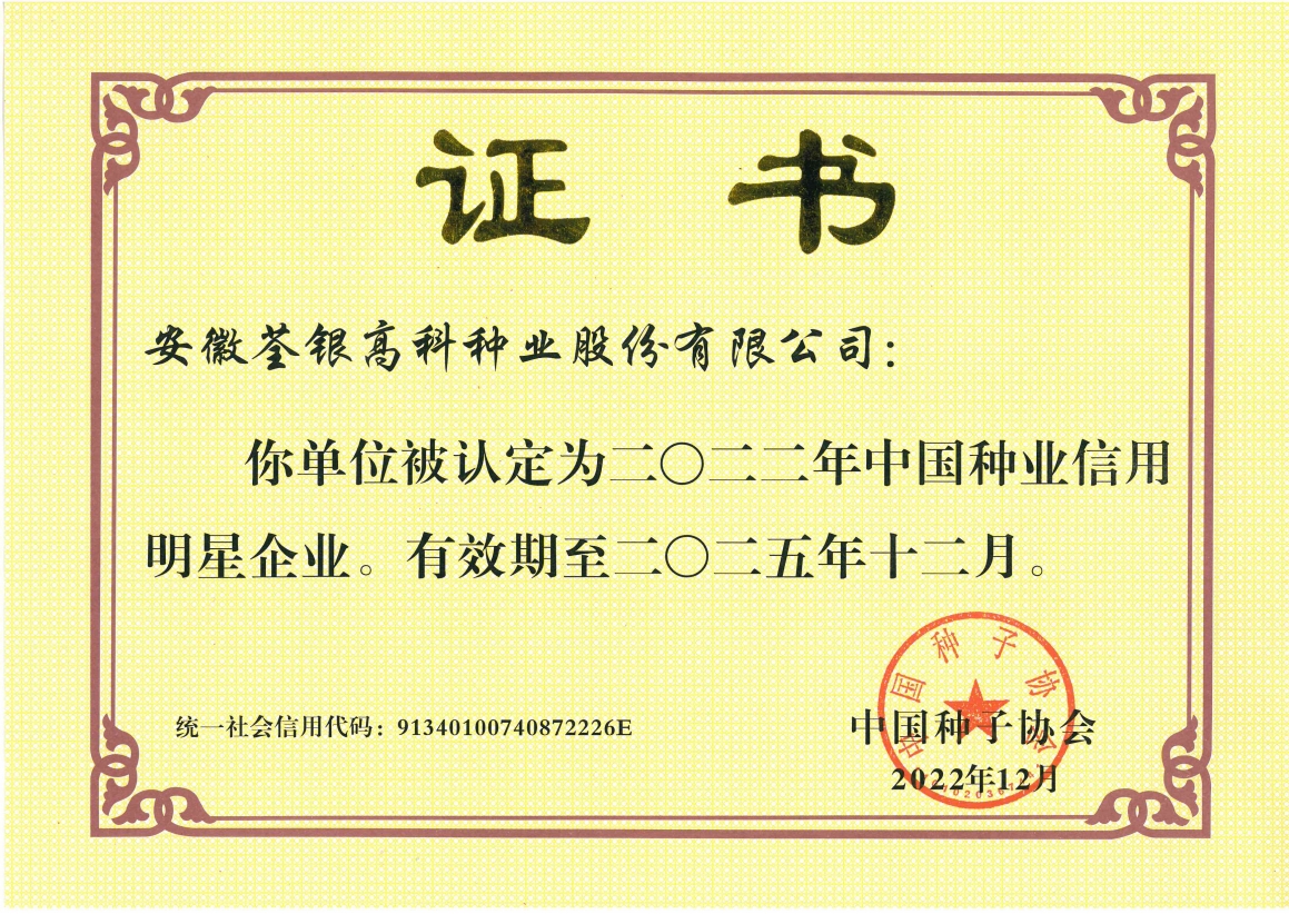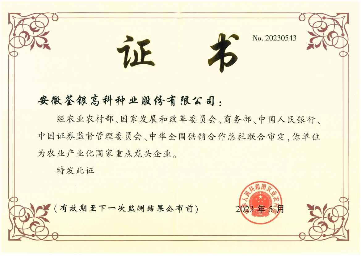 安徽荃銀高科種業(yè)股份有限公司是一家“以種業(yè)為核心、農(nóng)業(yè)服務(wù)為延伸、探索和創(chuàng)新農(nóng)業(yè)多元化發(fā)展”的現(xiàn)代高科技種業(yè)上市公司,證券代碼:300087。公司注冊(cè)資金9.47億元,系“中國(guó)種業(yè)領(lǐng)軍企業(yè)、農(nóng)業(yè)產(chǎn)業(yè)化國(guó)家重點(diǎn)龍頭企業(yè)、國(guó)家高新技術(shù)企業(yè)、農(nóng)業(yè)部首批農(nóng)作物種子育繁推一體化企業(yè)、中國(guó)種業(yè)信用明星企業(yè)"。在國(guó)內(nèi)控股子公司20多家,在國(guó)外設(shè)立分支機(jī)構(gòu)4家,良種銷(xiāo)售至全國(guó)20多個(gè)?。ㄊ小^(qū)),出口覆蓋20多個(gè)國(guó)家與地區(qū),種業(yè)綜合實(shí)力、雜交水稻研發(fā)、推廣及海外業(yè)務(wù)規(guī)模均居全國(guó)種子企業(yè)前2位。